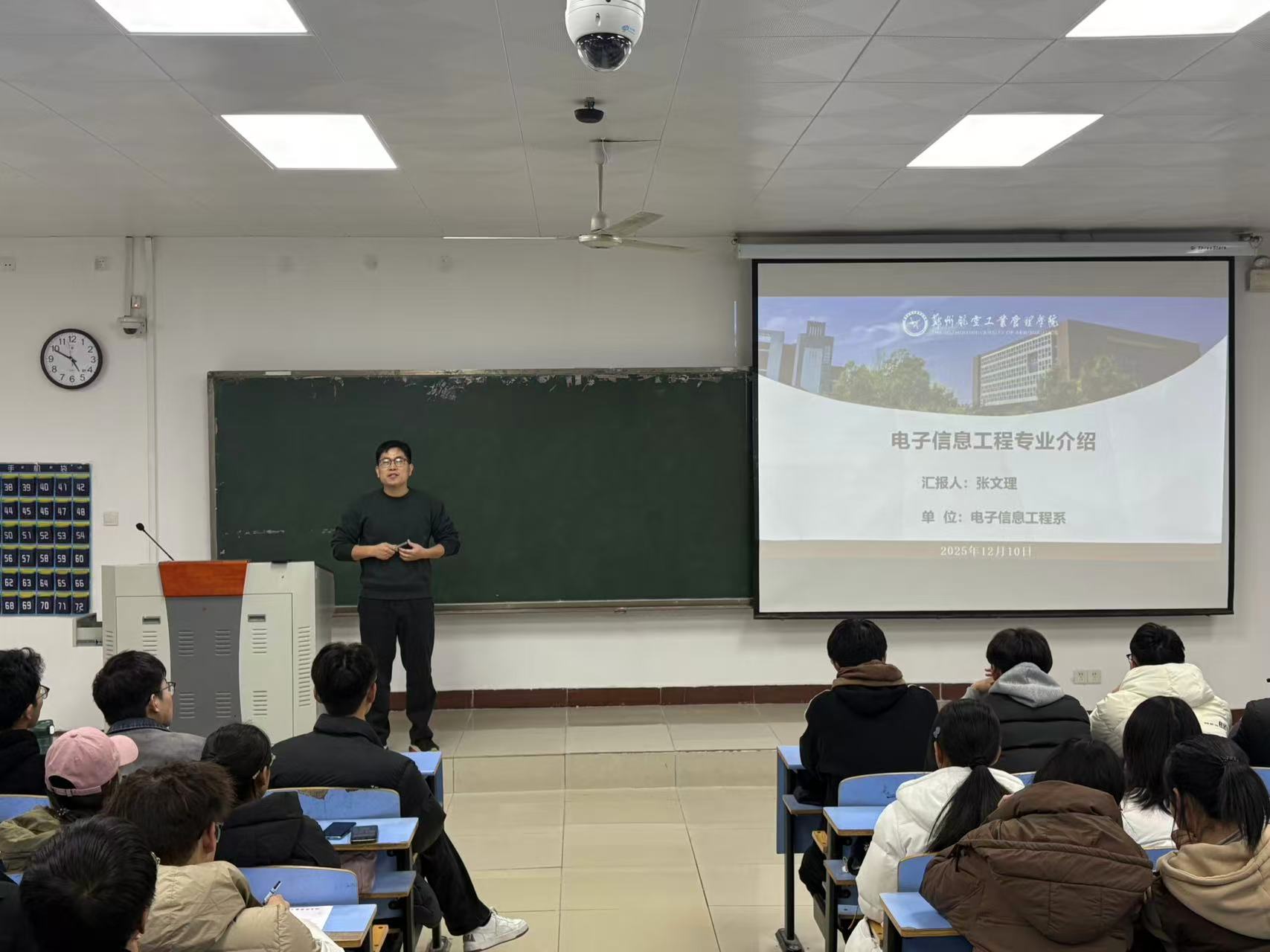 为做好电子信息学院2025级本科生专业分流工作,根据学校要求,12月16日,我院电子信息工程和通信工程两位专业系主任在01B106召开了2025级学生专业分流宣传动员会。