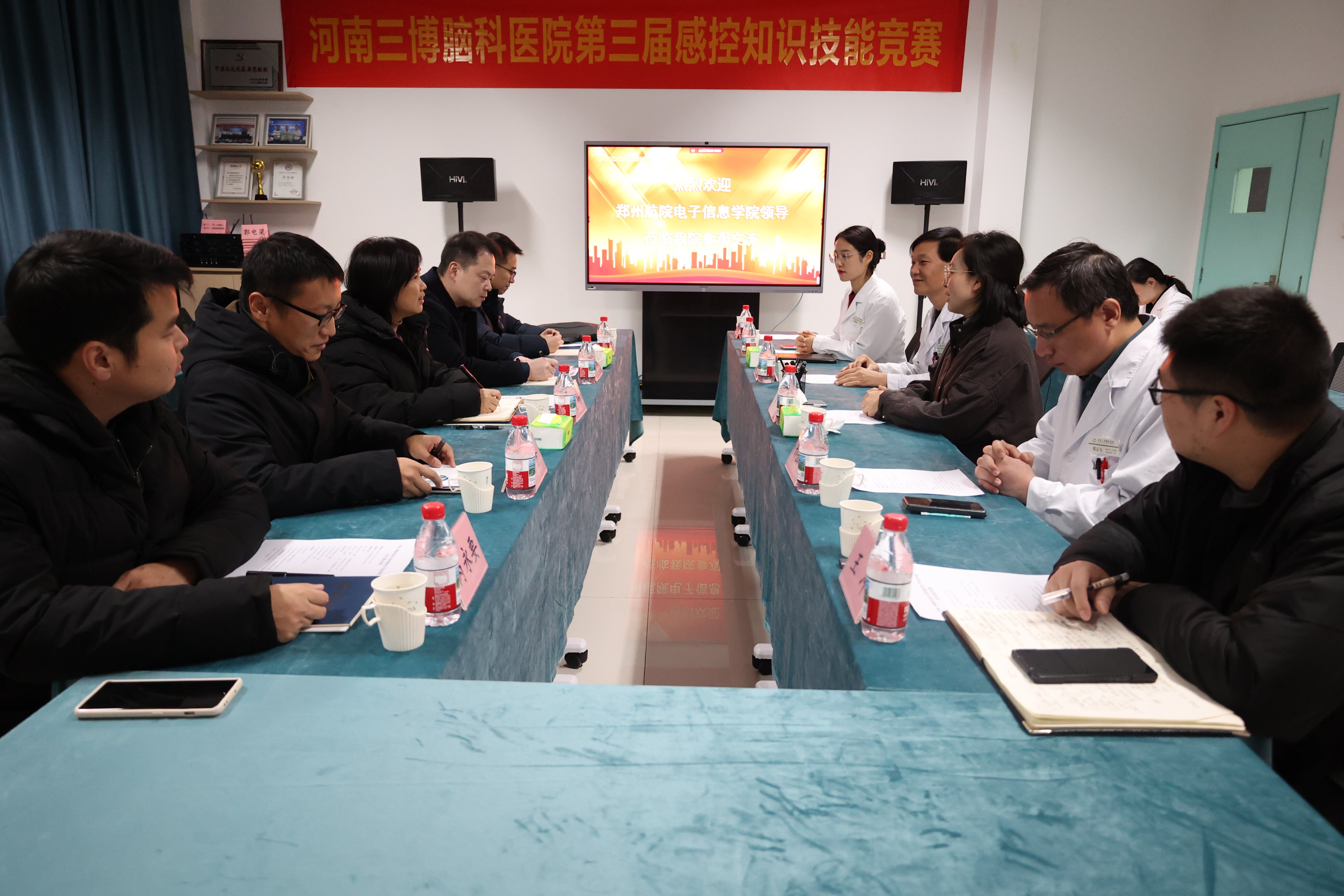 12 月 31 日上午,电子信息学院与河南三博脑科医院举行就业实习基地签约揭牌仪式。学院党委书记葛畅、院长陈宇带队,党委副书记周青、副院长王毅及研究生党支部书记芮永要同行,河南三博脑科医院院长李娟携相关科室负责人热情接待,双方围绕人才培养、科研合作等核心议题展开深度交流。