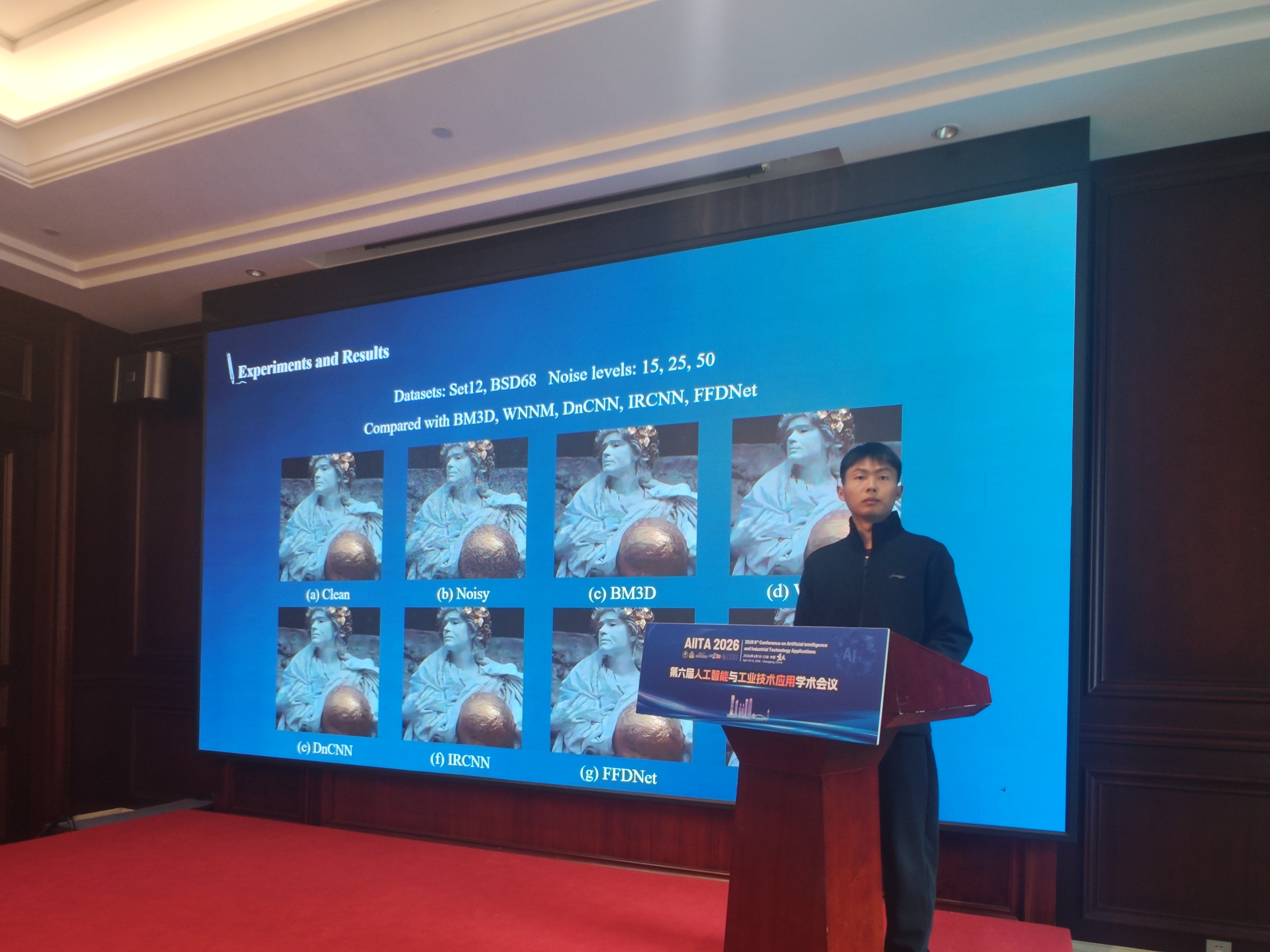 4月9日至12日,2024级通信工程专业陈豪、张旭东同学参与在重庆举办的第六届人工智能与工业技术应用学术会议,并分别在会议上做了题为“D-FFDNet: An Image Denoising Algorithm Combining FFDNet and DBSCAN Clustering”和“Adaptive Budgeted Temporal CSI Feedback via Future-Slot Action Allocation”的口头报告。