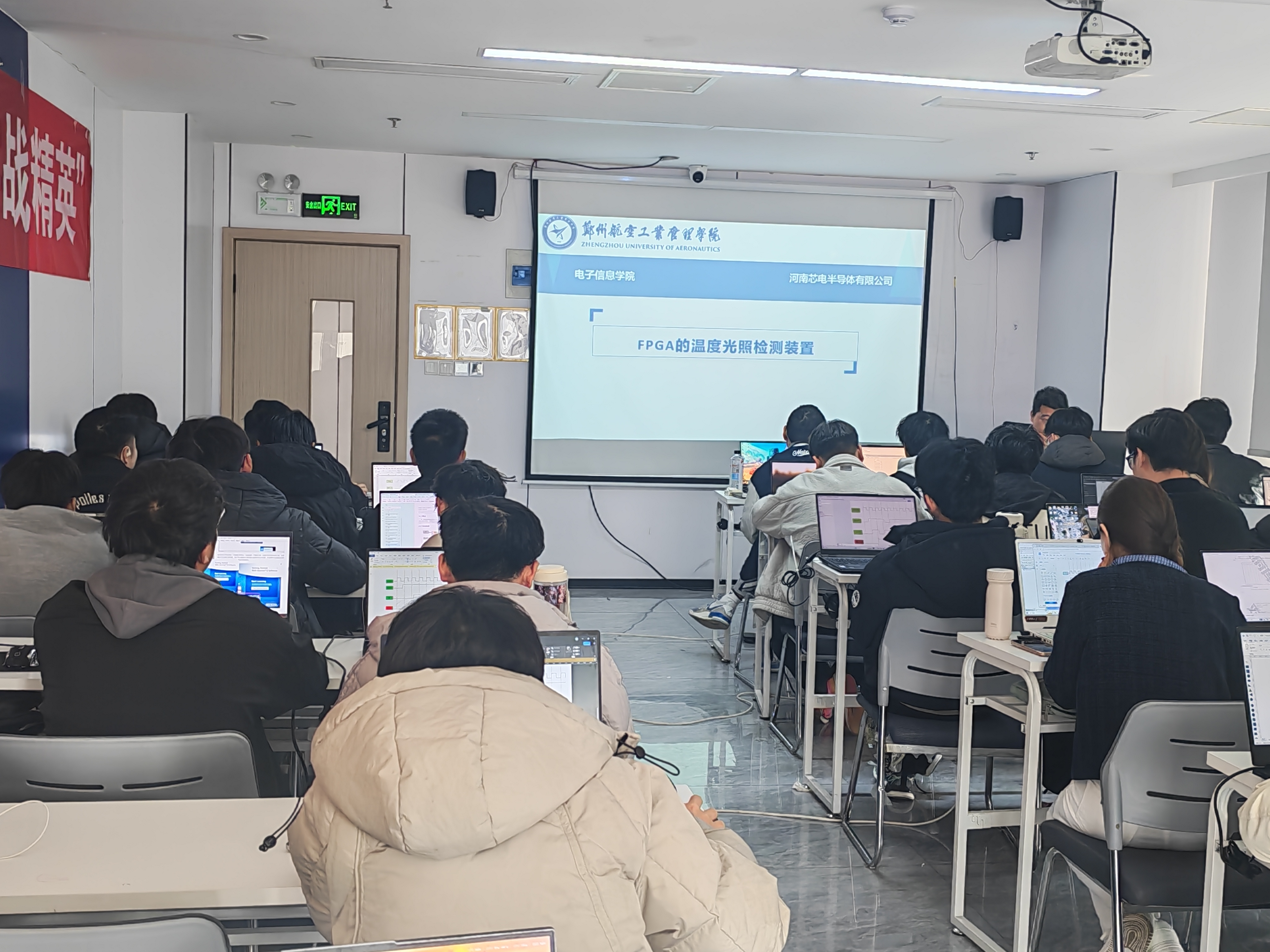 为深化电子信息类专业师资队伍建设,提升教师FPGA技术教学与实践应用能力,推动课程教学与产业技术发展同频共振,12月12日至14日,我院与河南芯电半导体有限公司联合组织开展《基于FPGA的温度光照检测装置》专项师资培训,学院20余名专业教师和学生全程参与本次系统化培训。