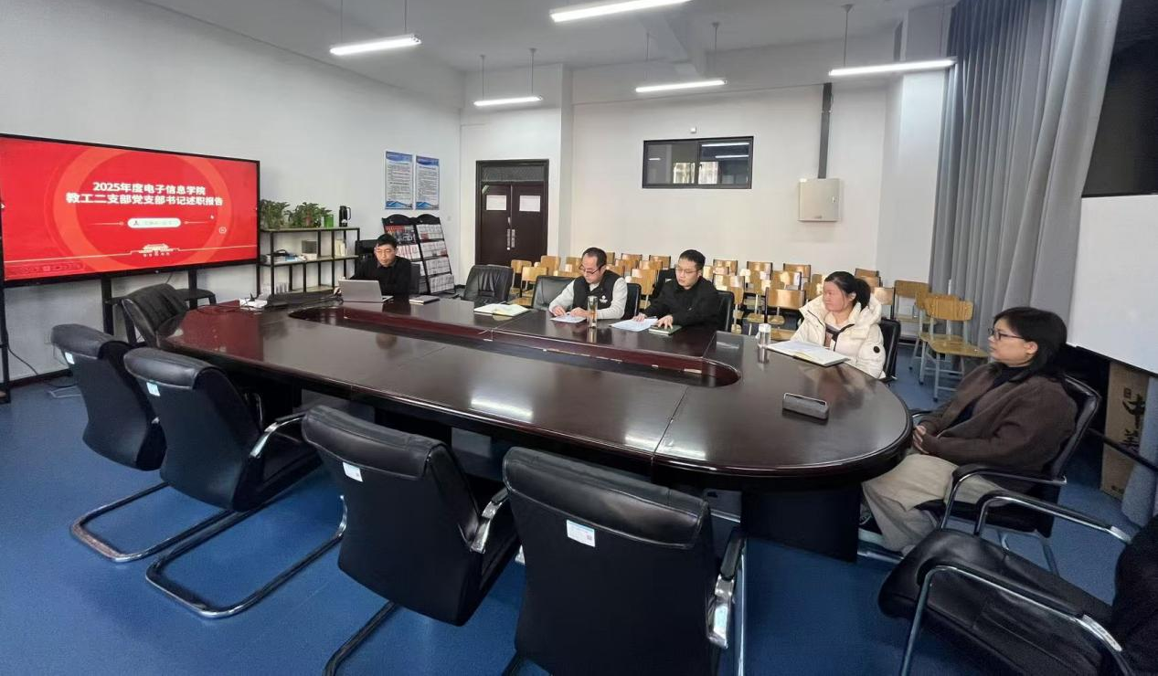 2026年1月8日,电子信息学院党组织召开2025年度党支部书记抓党建述职评议大会,对电子信息学院教工第一党支部、教工第二党支部、学生第一党支部、学生第二党支部和研究生党支部共5位党支部书记履职情况进行全面评议。
